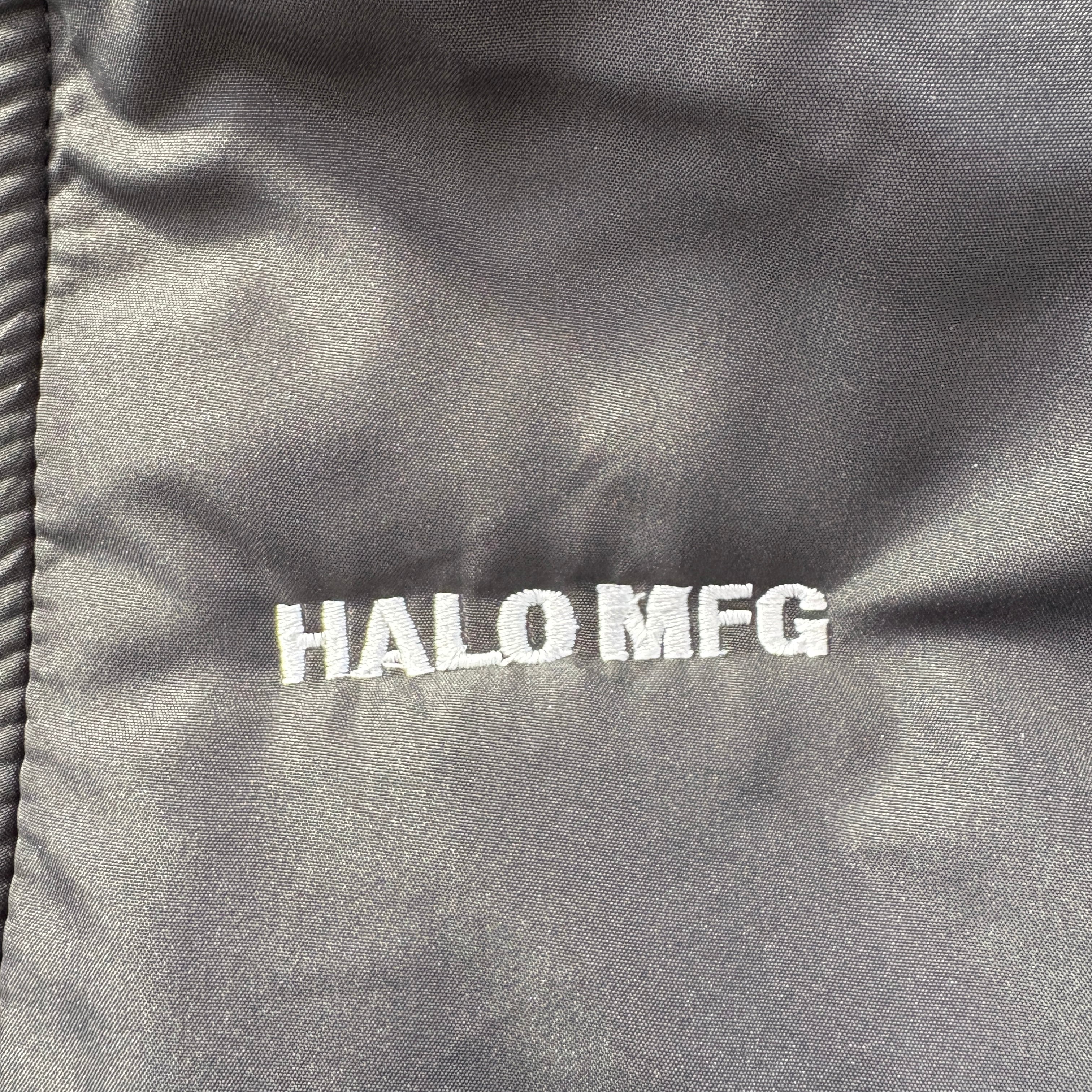 「H」ロゴ刺繍と、「HALO MFG」の
