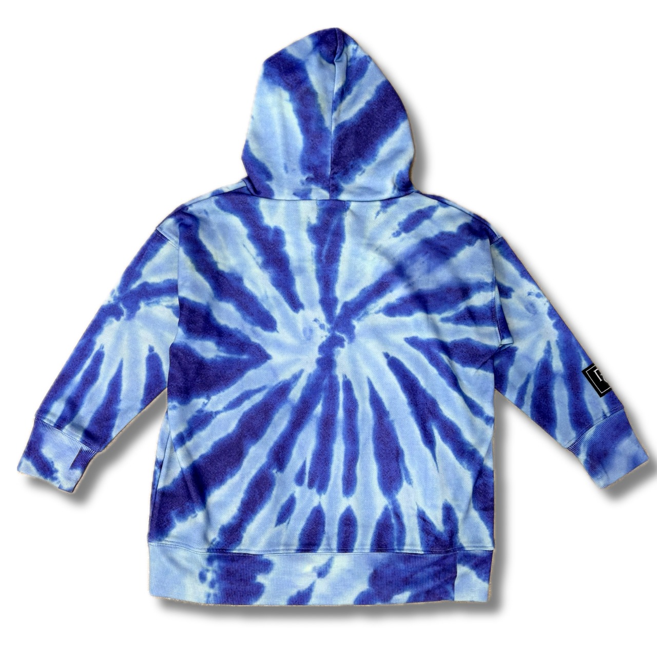 鮮やかなブルーのタイダイ柄が目を引く、
