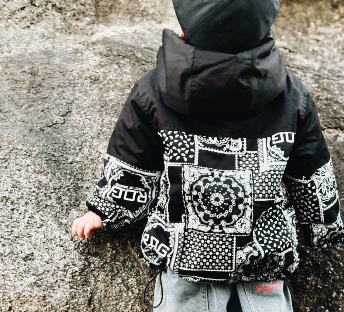 モノトーンのバンダナ柄(ペイズリー)を