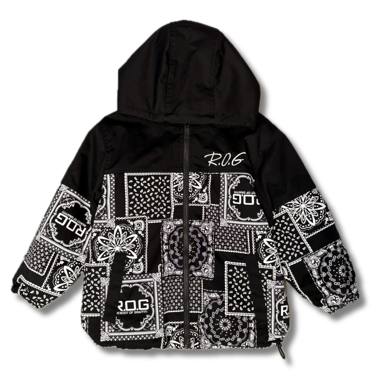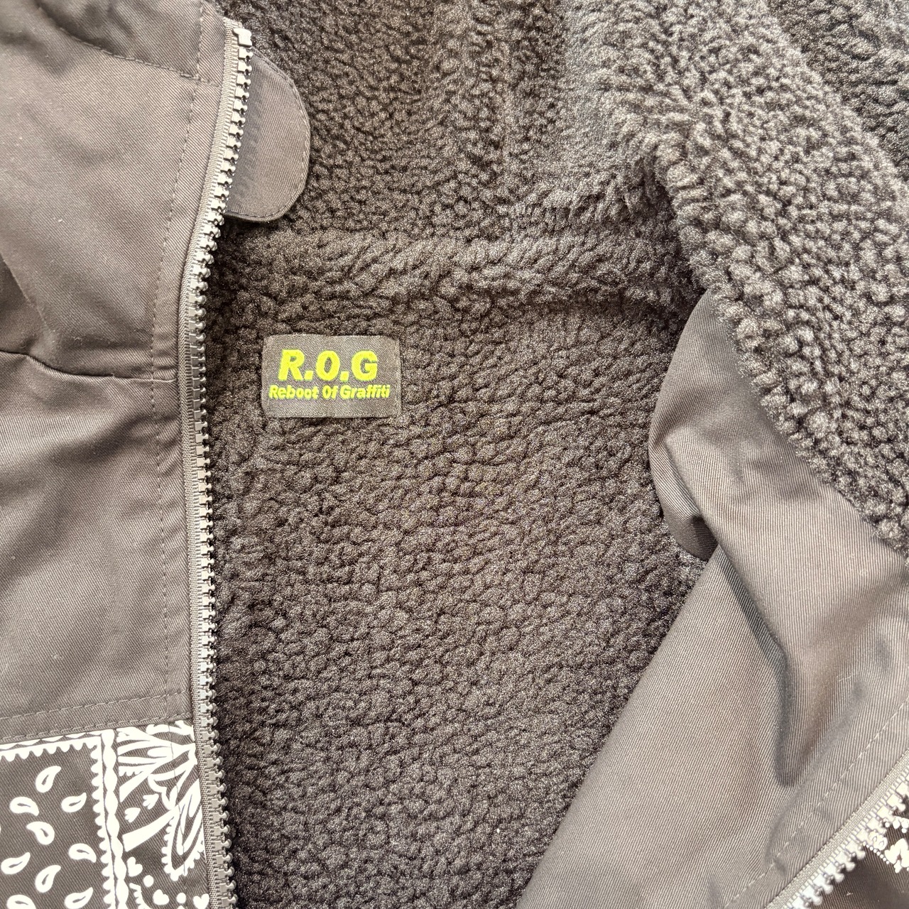 【R.O.G】Bandana Patchwork Sherpa-Lined Hoodie Jacket